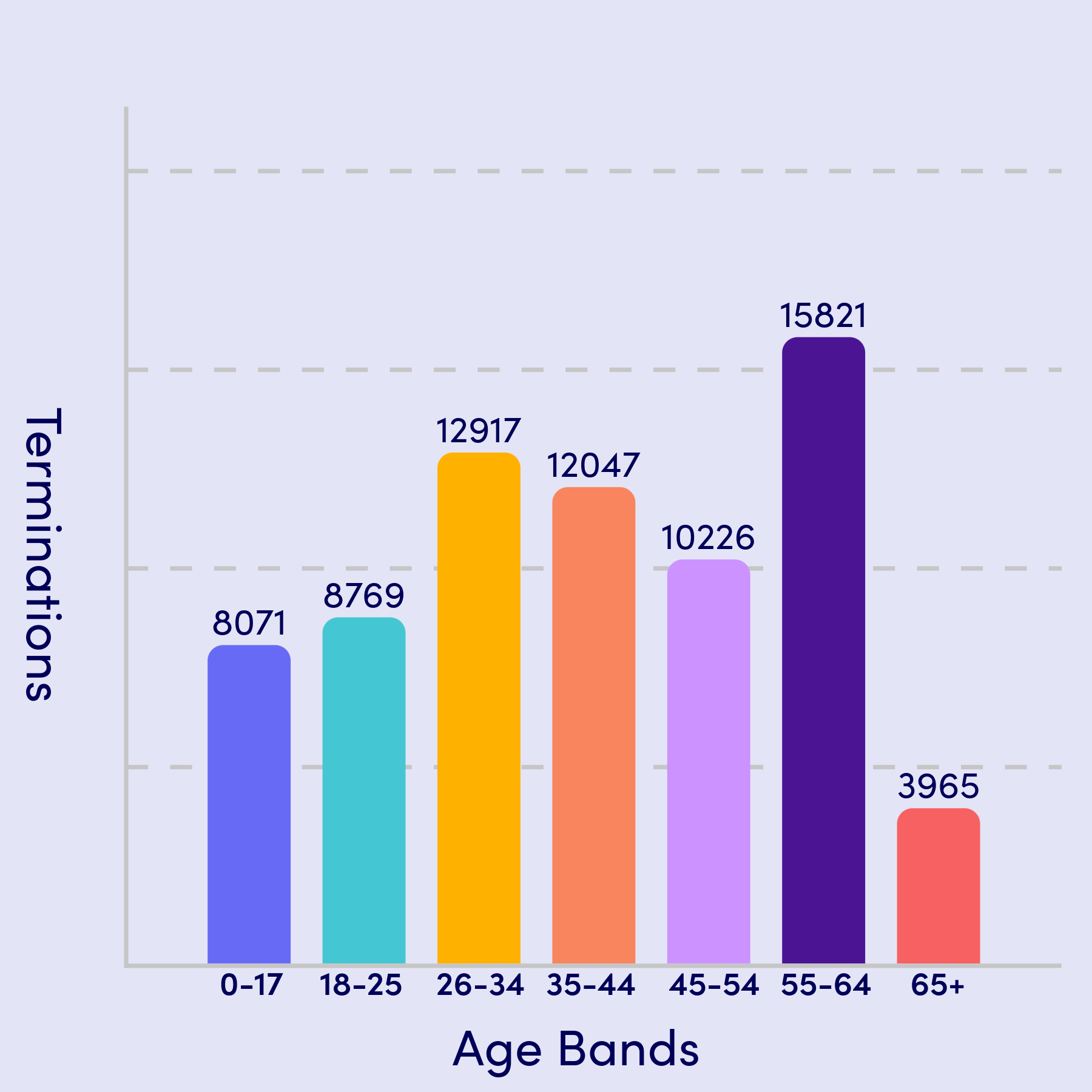 Total Terminations by Age Band: Through 1/20/2026